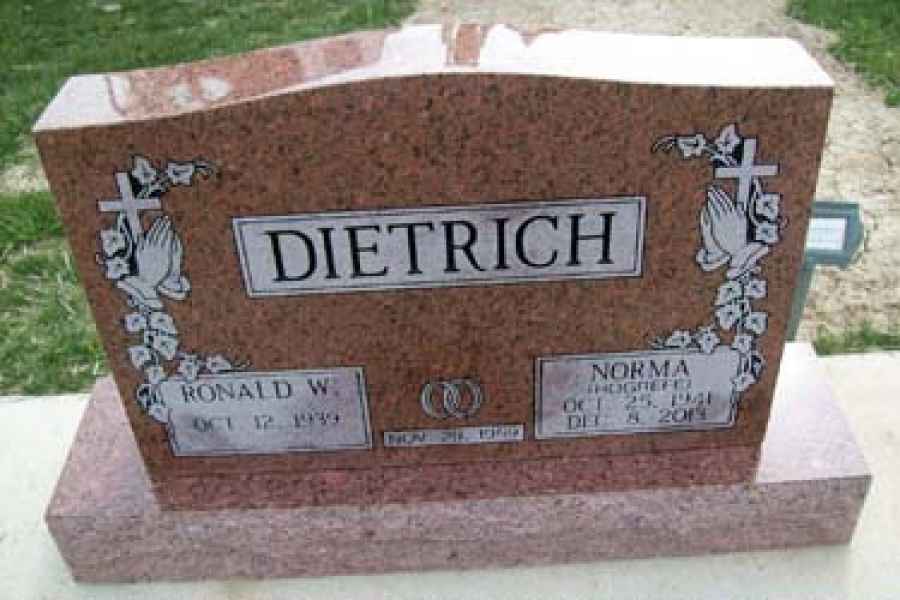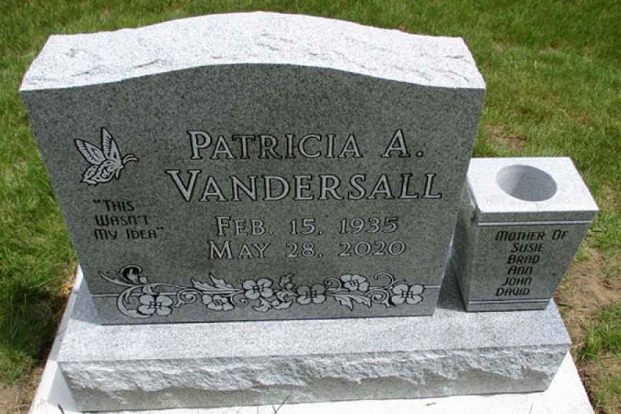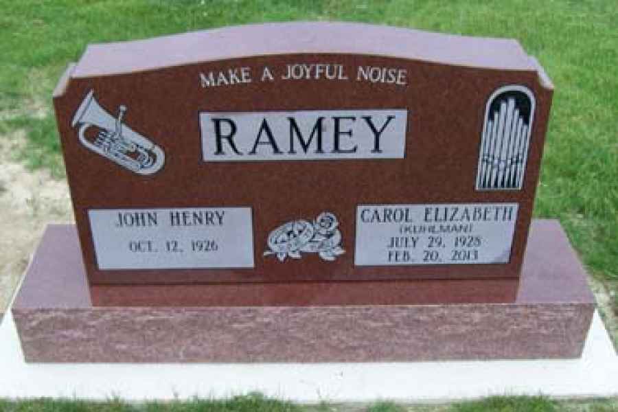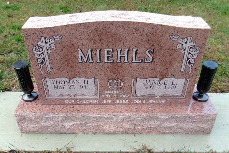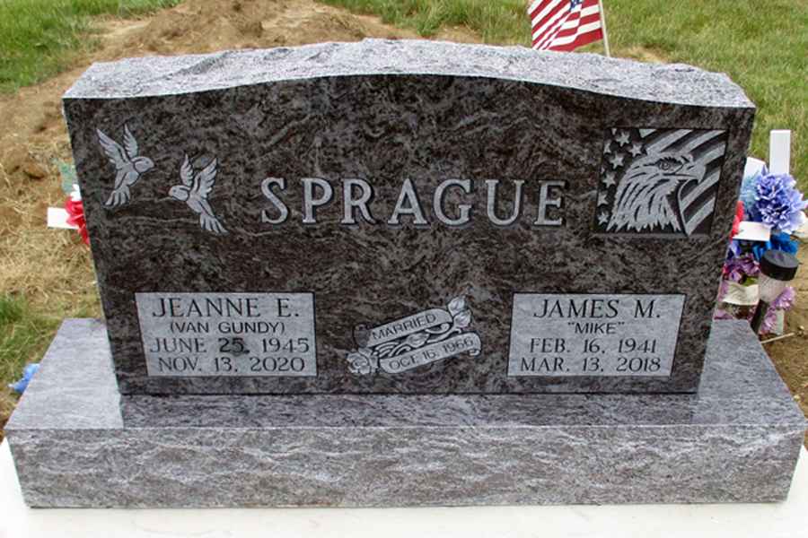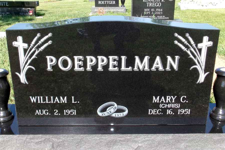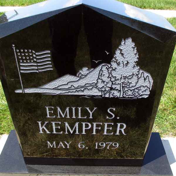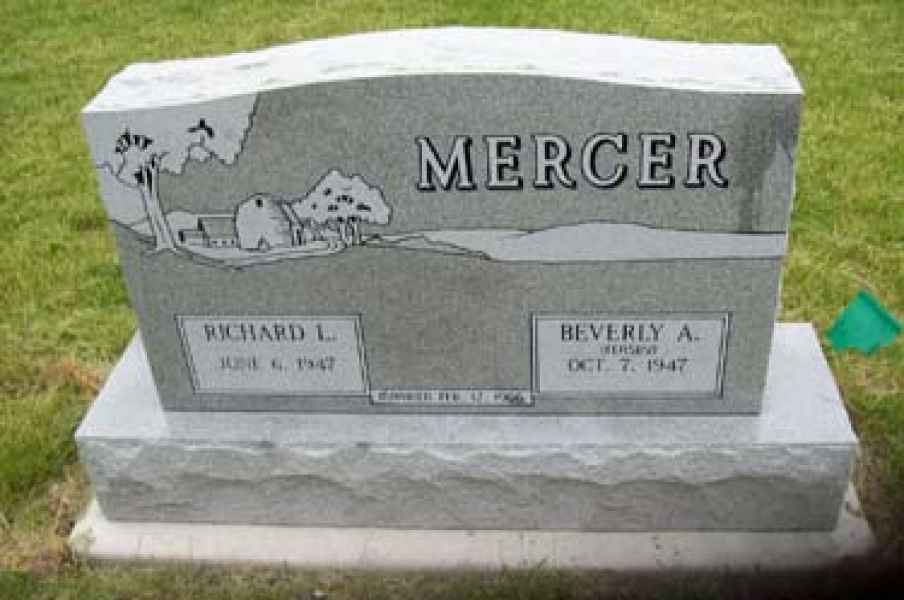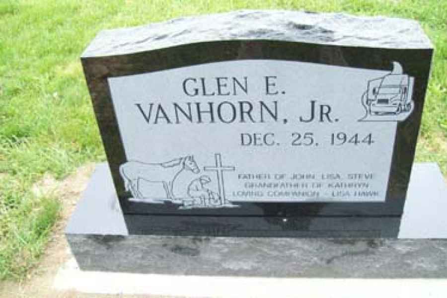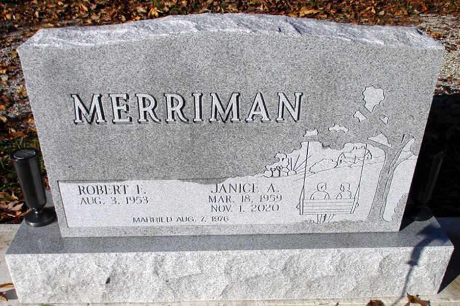 This method is the most commonly used. It can be applied to any color of granite. We cut the desired design into a thick stencil material which is applied to the granite. Then, the monument is sandblasted to specifications to achieve the desired results.