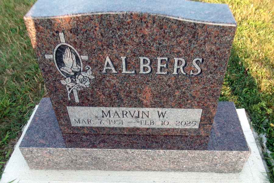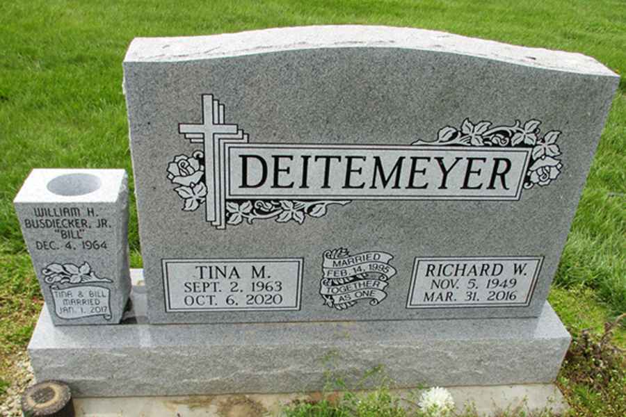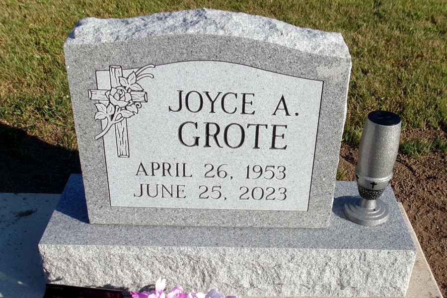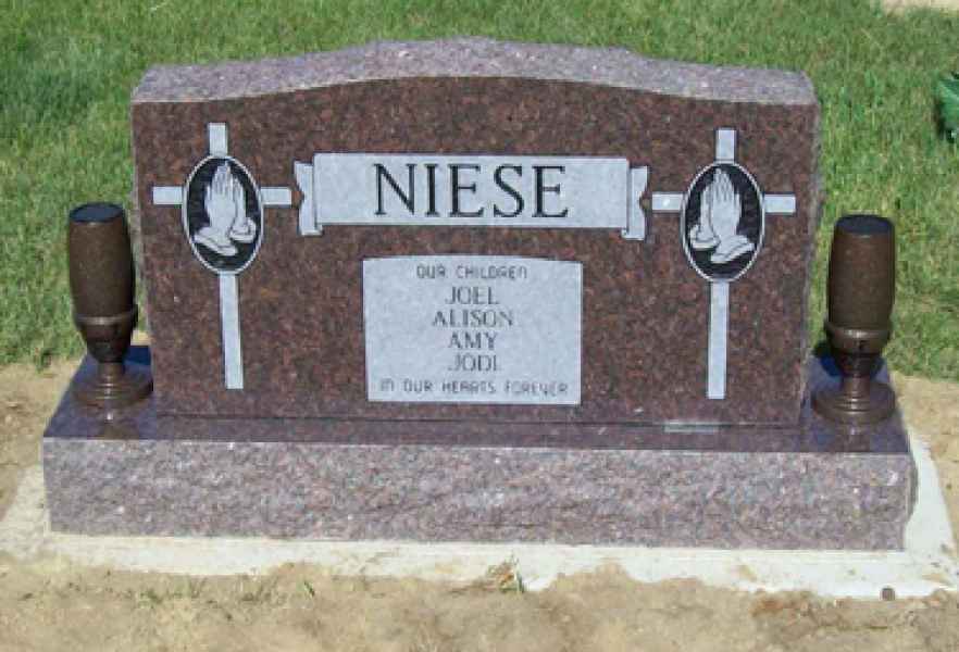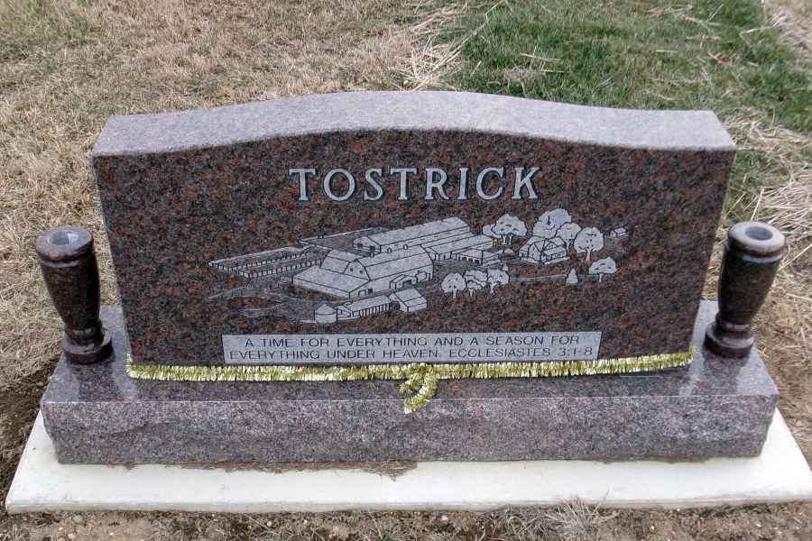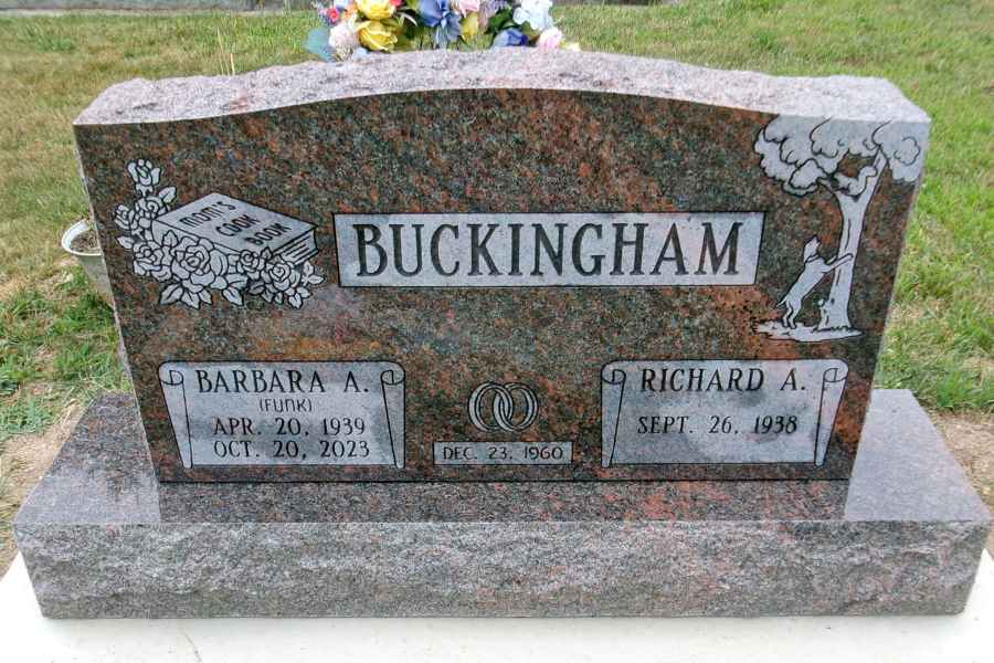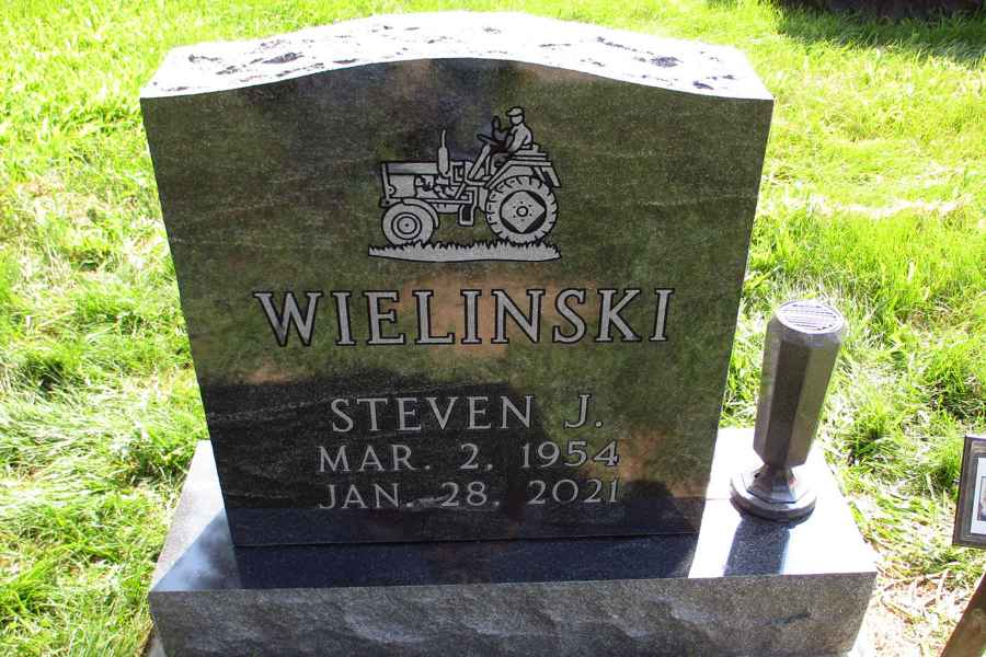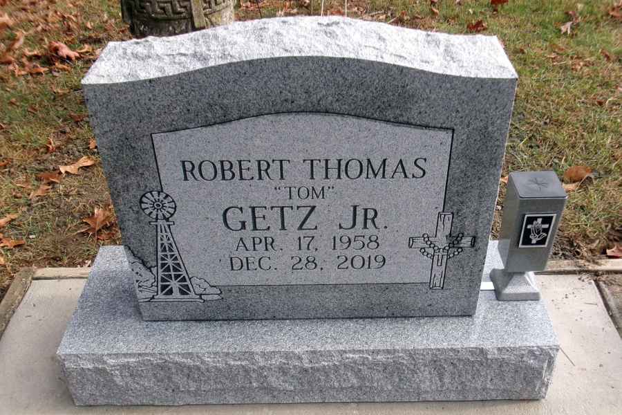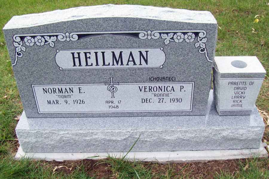 This method is the most commonly used. It can be applied to any color of granite. We cut the desired design into a thick stencil material which is applied to the granite. Then, the monument is sandblasted to specifications to achieve the desired results.