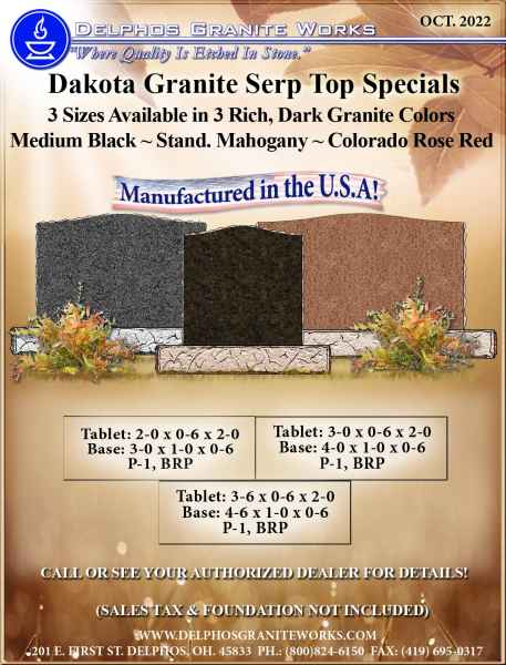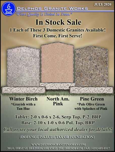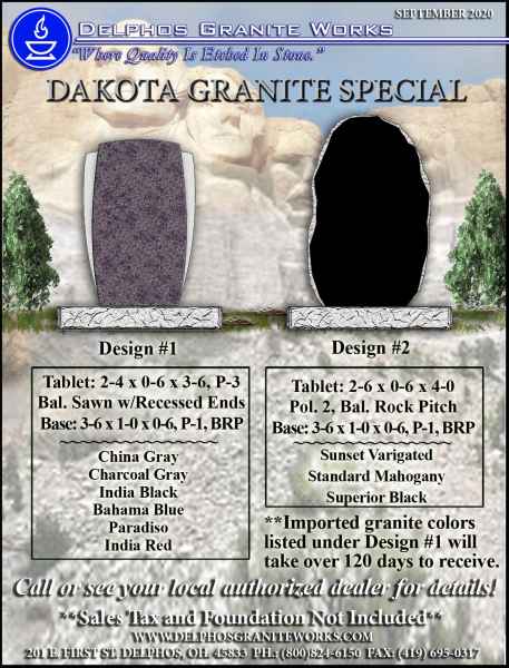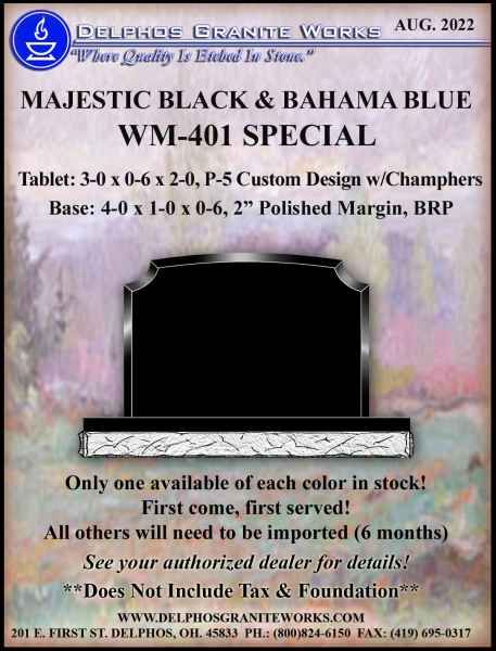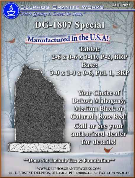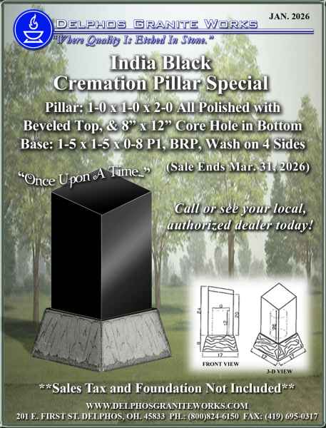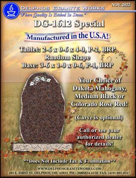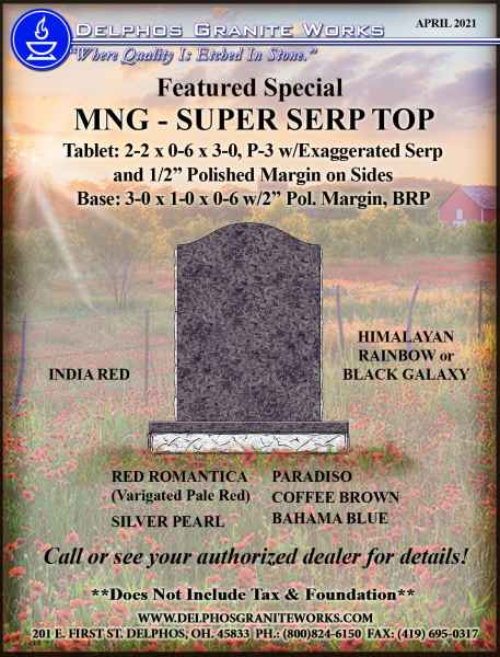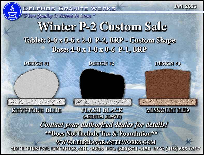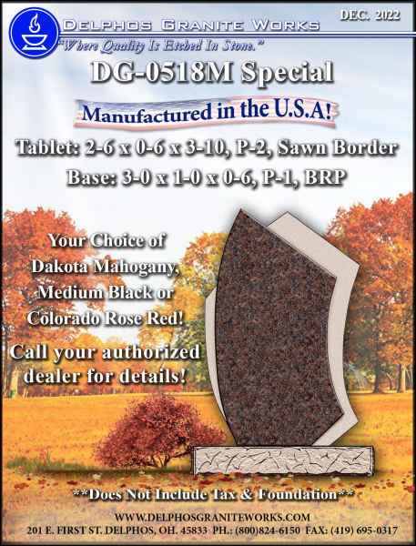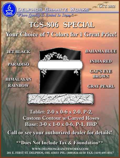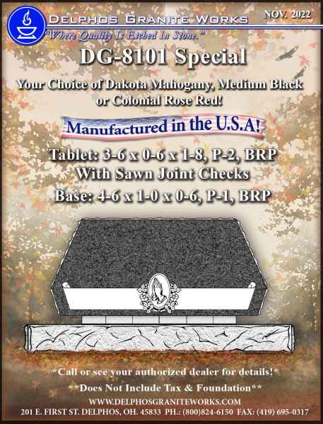 Below you will find monument items that we have current on special pricing! Contact our main office for more information.