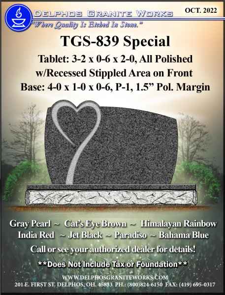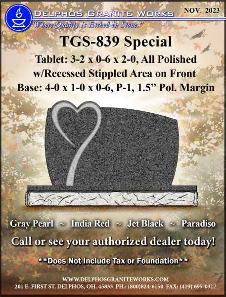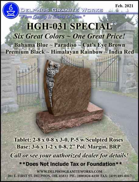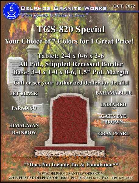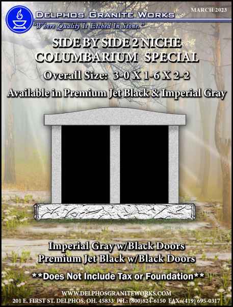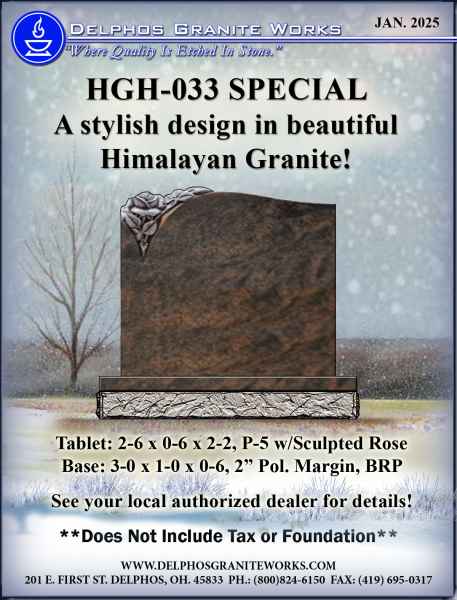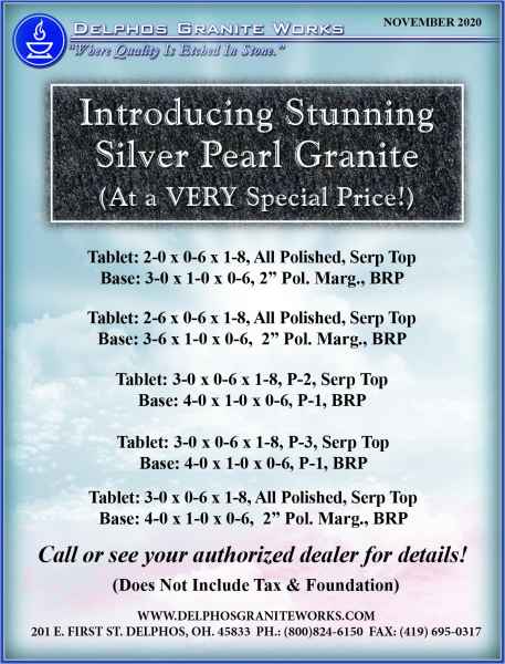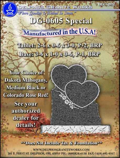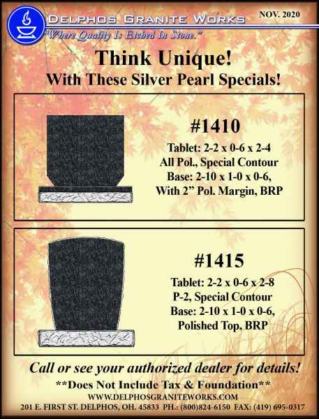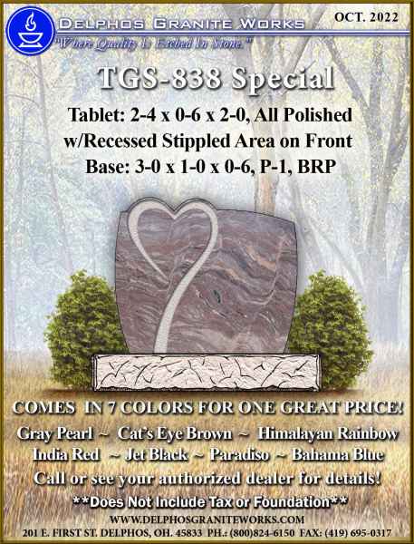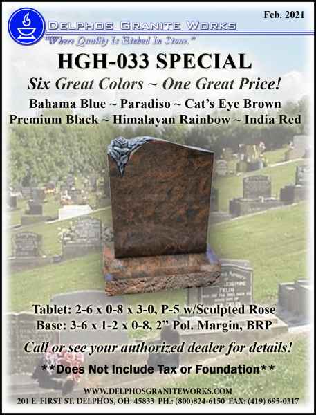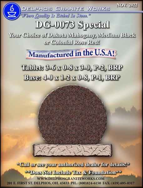 Below you will find monument items that we have current on special pricing! Contact our main office for more information.